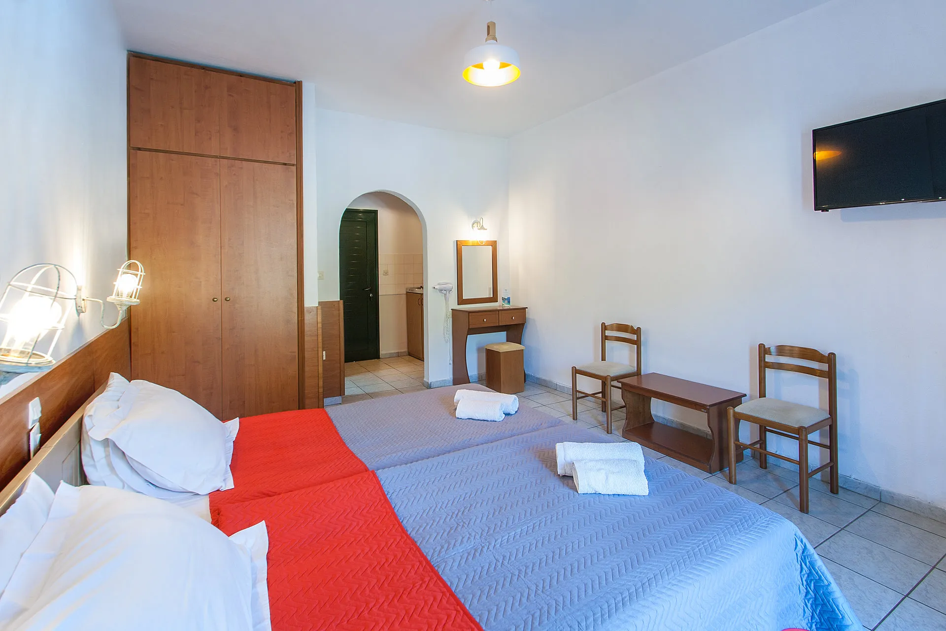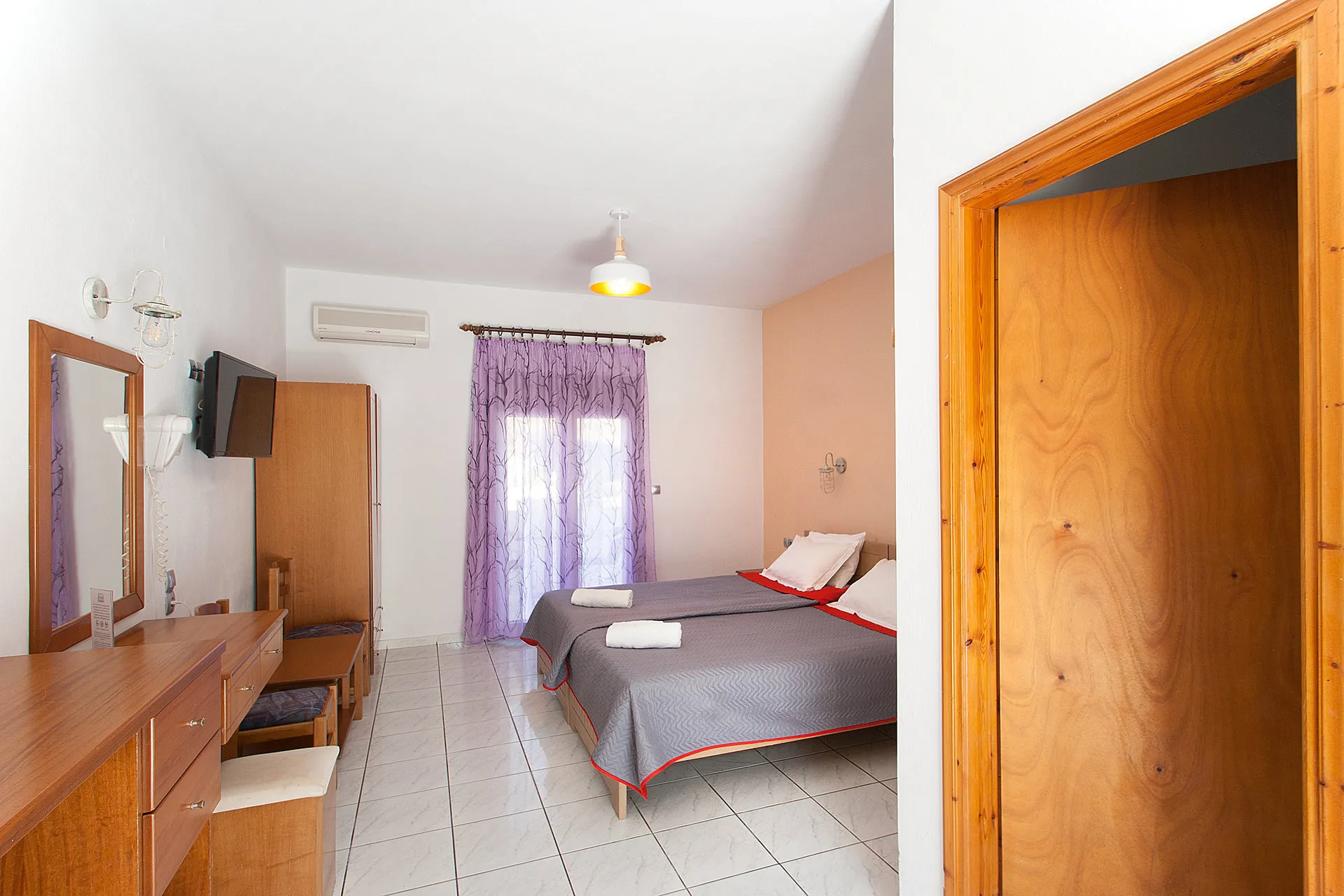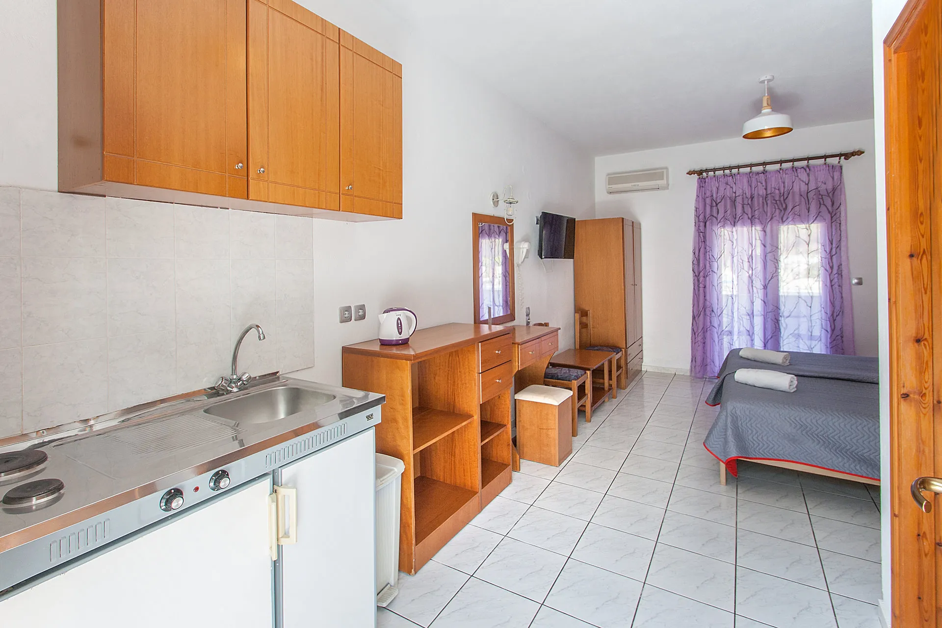 We understand the value of flexibility on holiday. That’s why your studio features a convenient kitchenette equipped with a fridge, stovetop, and kettle—perfect for preparing a fresh Greek breakfast or a light lunch to enjoy al fresco. After a day at the beach, retreat to the comfort of air-conditioning and a cozy bed designed for a restful night's sleep.