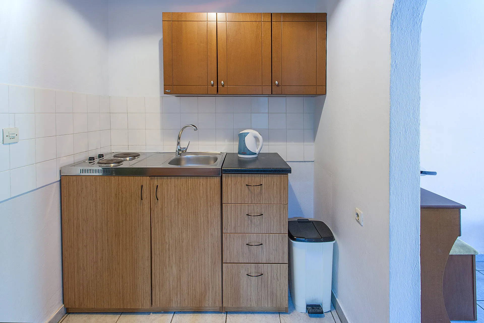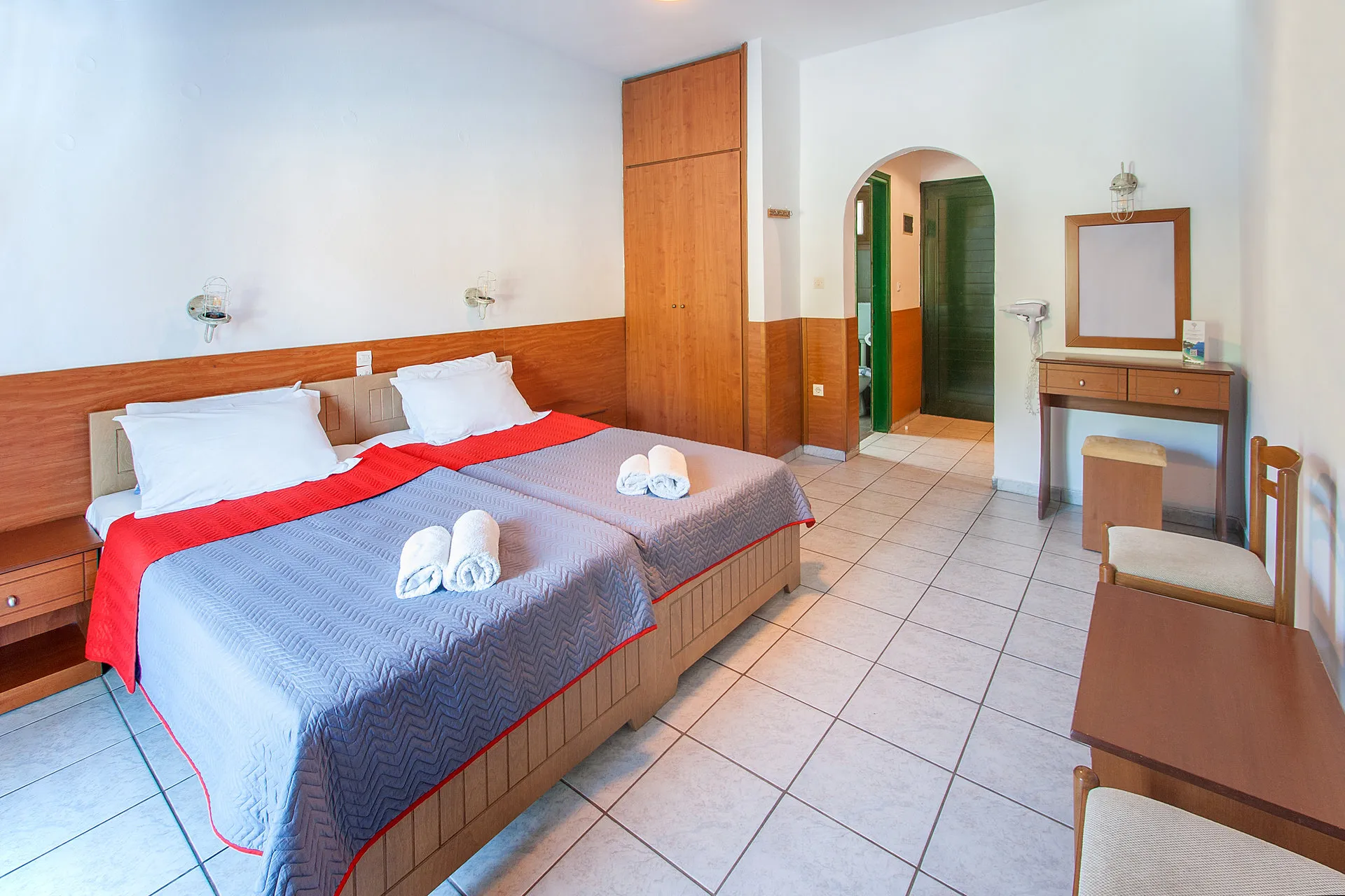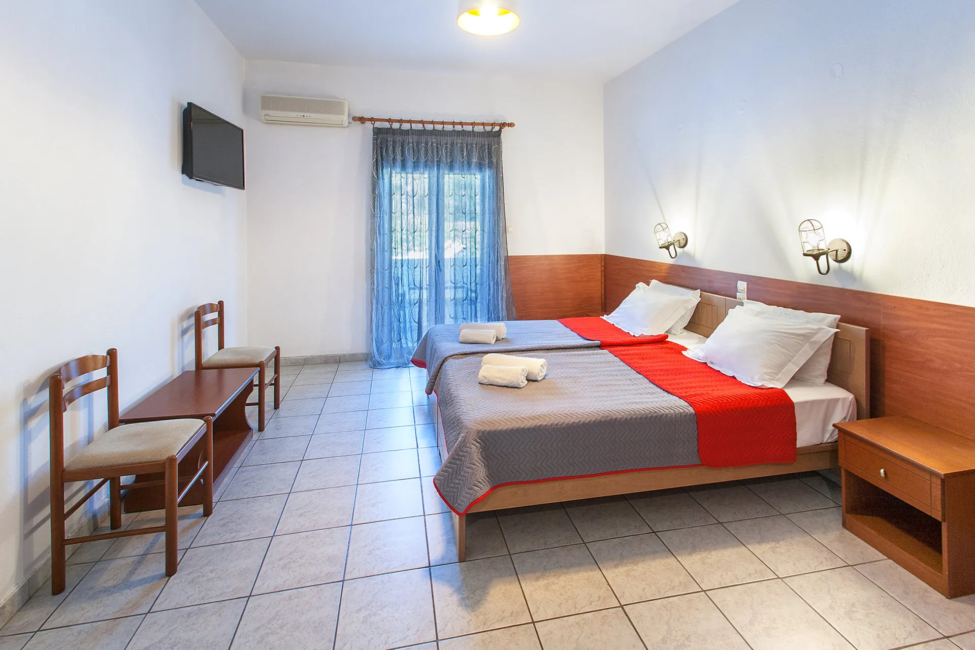 We understand the value of flexibility on holiday. That’s why your studio features a convenient kitchenette equipped with a fridge, stovetop, and kettle—perfect for preparing a fresh Greek breakfast or a light lunch to enjoy al fresco. After a day at the beach, retreat to the comfort of air-conditioning and a cozy bed designed for a restful night's sleep.